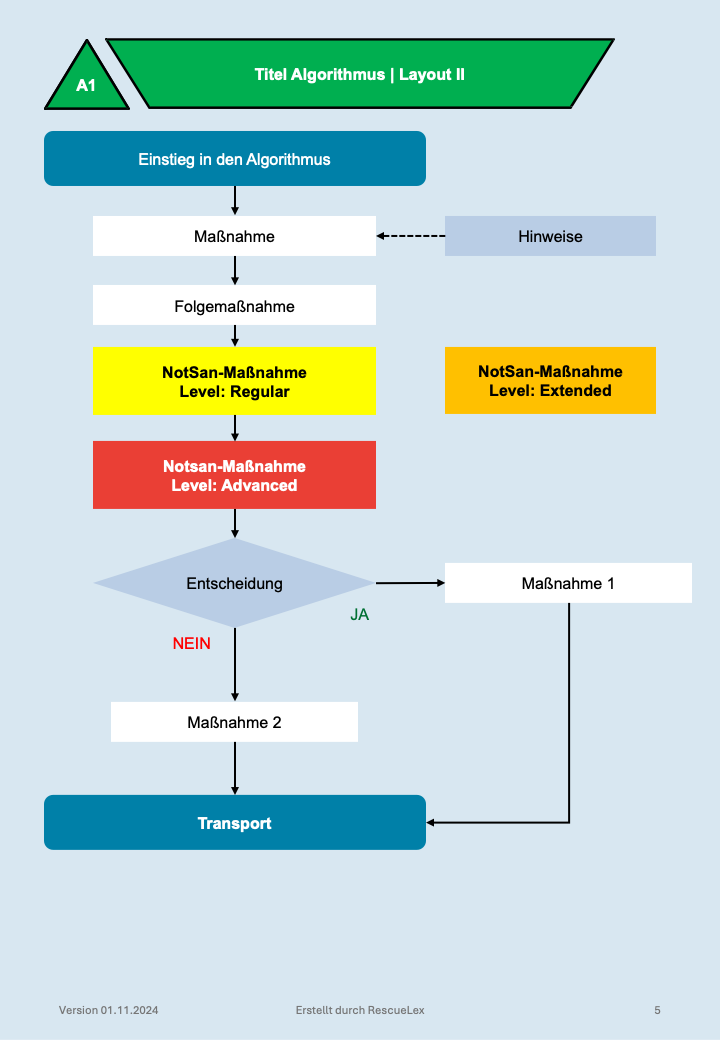 Hier wird das verwendete Layout und Legende der Handlungsanweisungen erklärt.
